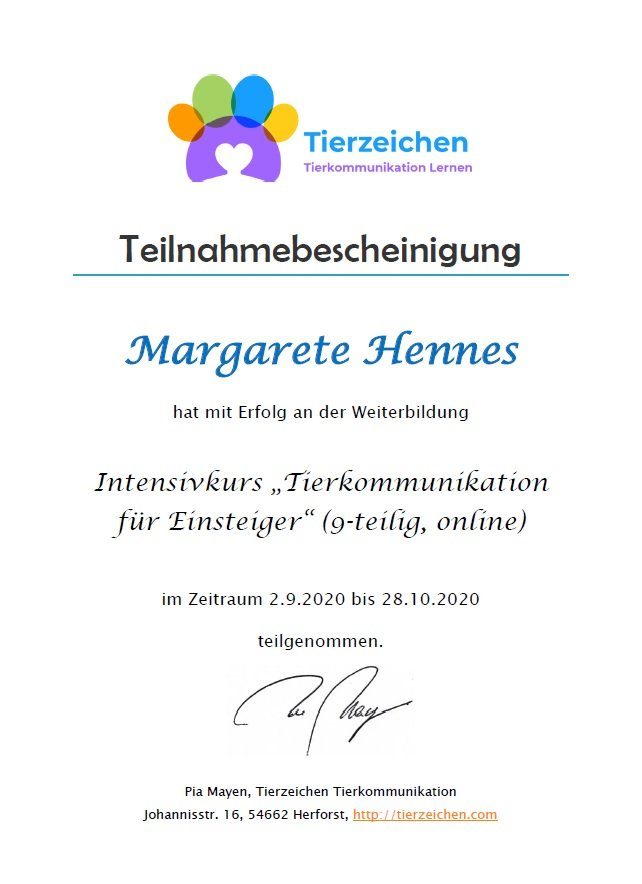 - Intensivkurs Tierkommunikation - Tierzeichen Tierkommunikation Pia Mayen